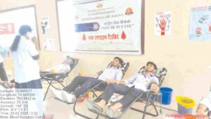 आयोजित शिबिरात रक्तदान करताना विद्यार्थी.