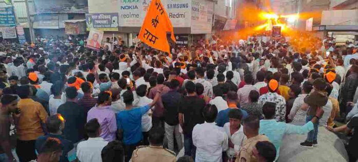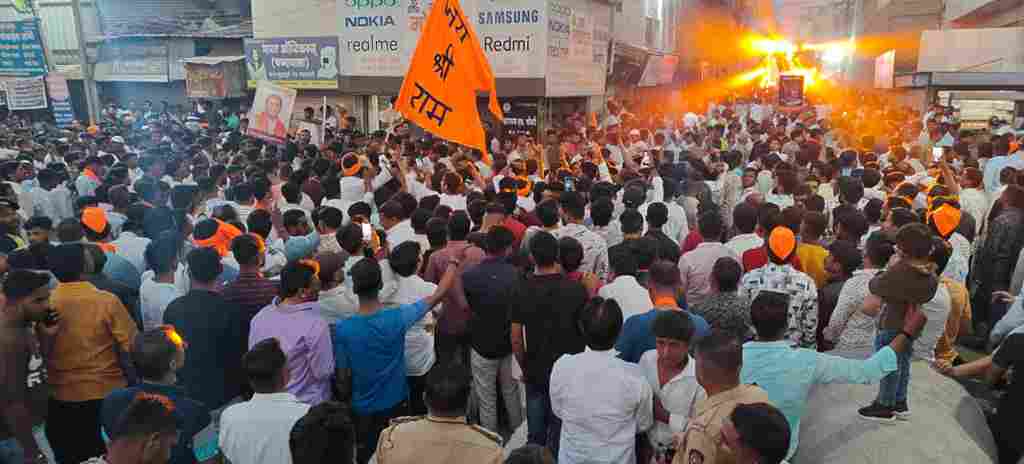करण्यात आली. सकल हिंदू समाज, हिंदूराष्ट्र सेना, वास्तव कंपनी ग्रुप, श्रीराम सेना अशा चार संघटना मिरवणुकीत सहभागी झाल्या होत्या. हिंदुत्ववादी कार्यकर्त्यांची जुन्या मार्गाने मिरवणूक काढण्यासाठी आग्रह धरला होता. मात्र, पोलिसांनी नवीन मार्गानेच मिरवणूक जाईल, अशी व्यवस्था केली होती. पोलीस प्रशासन ठाम राहिल्याने पंचपीर चावडी – बॉम्बे