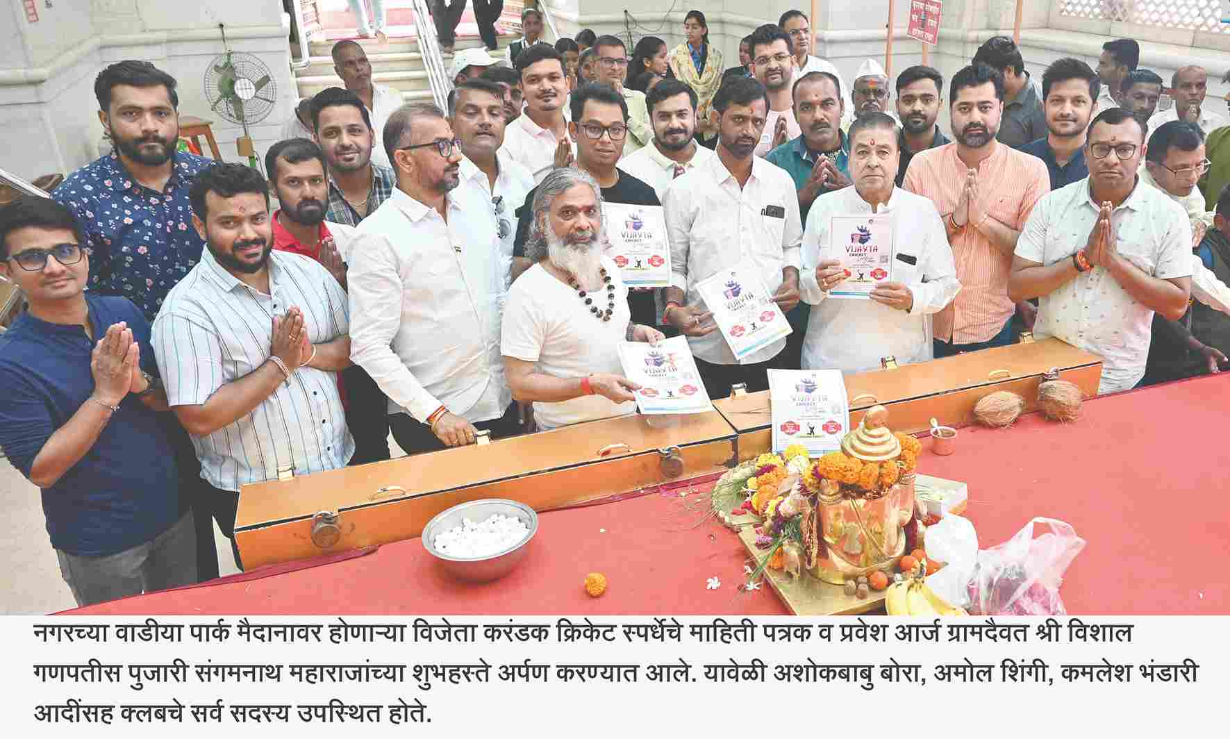 विजेता करंडक क्रिकेट स्पर्धेचे माहिती पत्रक व प्रवेश अर्ज ग्रामदैवत श्री विशाल गणपतीस अर्पण